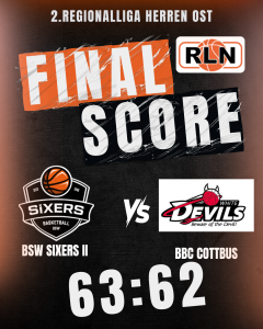 Dann meldete sich Cottbus mit zwei schnellen Dreiern zurück – ein Krimi in der Ballsporthalle entwickelte sich. Bei noch zwei Sekunden auf der Uhr ging Jarne an die Freiwurflinie: Er glich zunächst aus und brachte die Sixers mit dem zweiten Treffer in Führung. Auszeit Cottbus, Einwurf, wilder Dreier – vorbei!