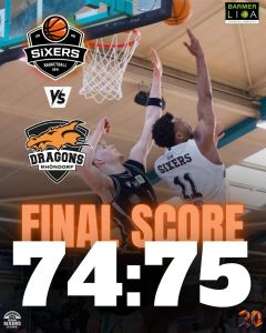 Mit dieser letzten Aktion endete die Partie – und die Dragons Rhöndorf sicherten sich den knappen 75:74-Auswärtssieg. Für die Sixers bleibt eine äußerst unglückliche Niederlage, die gleichzeitig das Aus im Kampf um die Playoffs bedeutet.