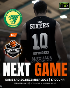 In der Steinberghalle gastieren die Sixers bei Rist Wedel – zugleich die erste Begegnung der Rückrunde für beide Teams. In der Tabelle trennen die Kontrahenten nur Nuancen: Die BSW Sixers rangieren aktuell auf Platz sieben, direkt dahinter folgt Rist Wedel auf Tabellenplatz acht. Entsprechend richtungsweisend ist dieses Duell im Kampf um die begehrten Play-off-Plätze.