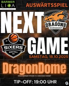 Die Gastgeber aus Rhöndorf, das Farmteam der Telekom Baskets Bonn (BBL), zählen wie die Sixers zu den jüngsten Mannschaften der Liga. Mit einem Durchschnittsalter von knapp unter 20 Jahren setzt Coach Max Becker auf ein hochtalentiertes, entwicklungsorientiertes Team. Zum Saisonstart mussten die Dragons allerdings einen schweren Rückschlag verkraften: Mannschaftskapitän und Center Daniel Meyer (2,18 m) fällt mit einer Achillessehnenverletzung auf unbestimmte Zeit aus. Die entstandene Lücke unter dem Korb füllt seither Benjamin Sadikovic ein 22-jähriger, 2,08 m großer Neuzugang aus Oberhaching, der im Schnitt 10 Punkte und 7,3 Rebounds beisteuert.