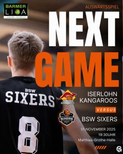 Nach dem überzeugenden Heimsieg gegen die Rostock Seawolves Academy wartet auf die BSW Sixers am kommenden Samstag eine anspruchsvolle Auswärtsaufgabe. Um 19:30 Uhr gastiert das Team von Headcoach Lukas Varga bei den Iserlohn Kangaroos, die aktuell mit einer Bilanz von einem Sieg und fünf Niederlagen auf dem zwölften Tabellenplatz stehen – allerdings deutlich stärker einzuschätzen sind, als es die Tabelle vermuten lässt.